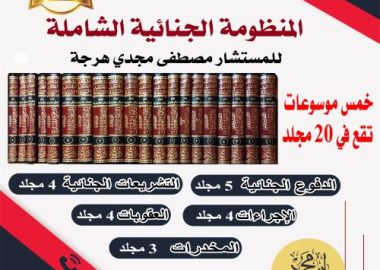المنظومة الجنائية الشاملة للمستشار مصطفى مجدي هرجة متوفرة الآن بعرض مميز لدى دار محمود تحتوي على 20 مجلد تقع في خمس موسوعات في العقوبات...